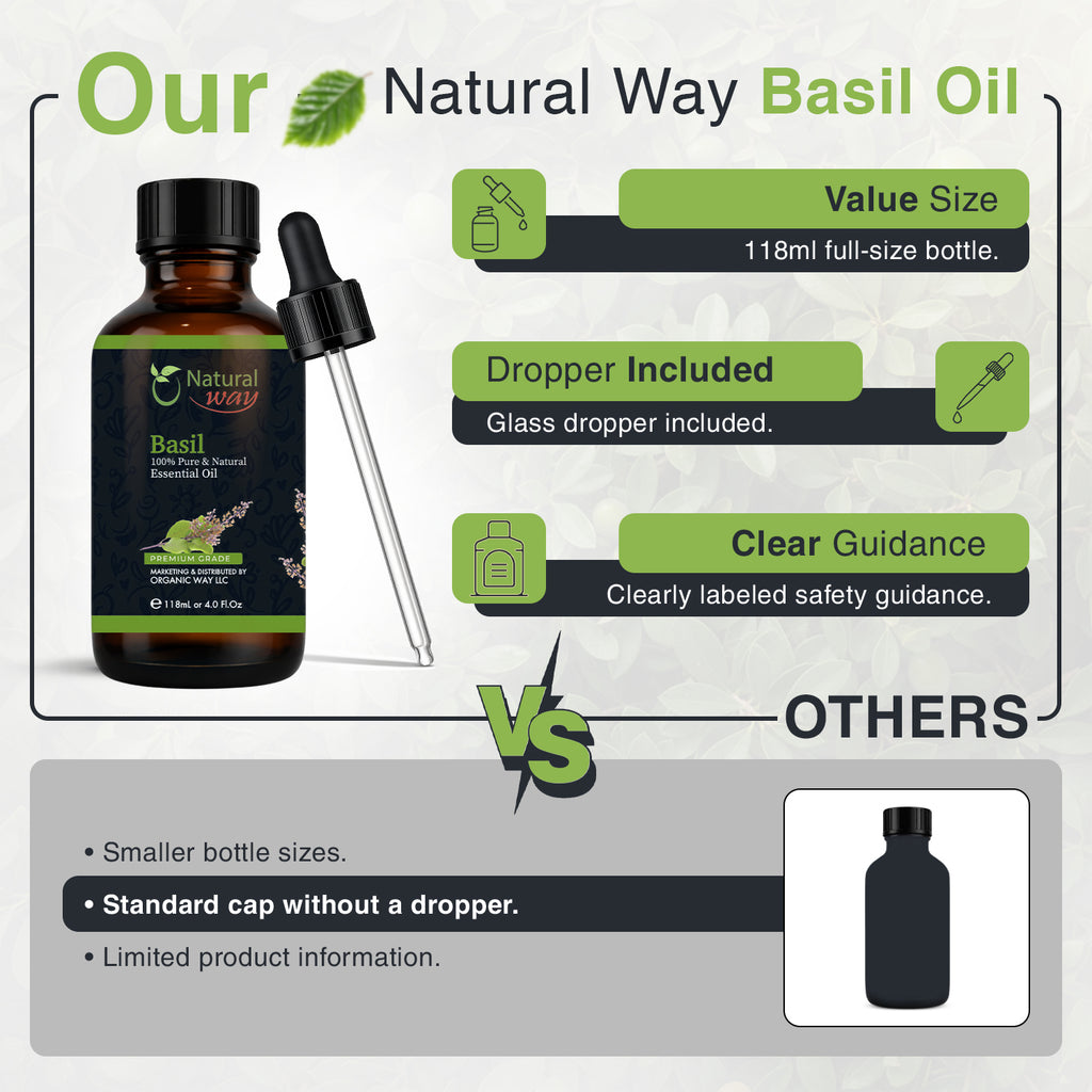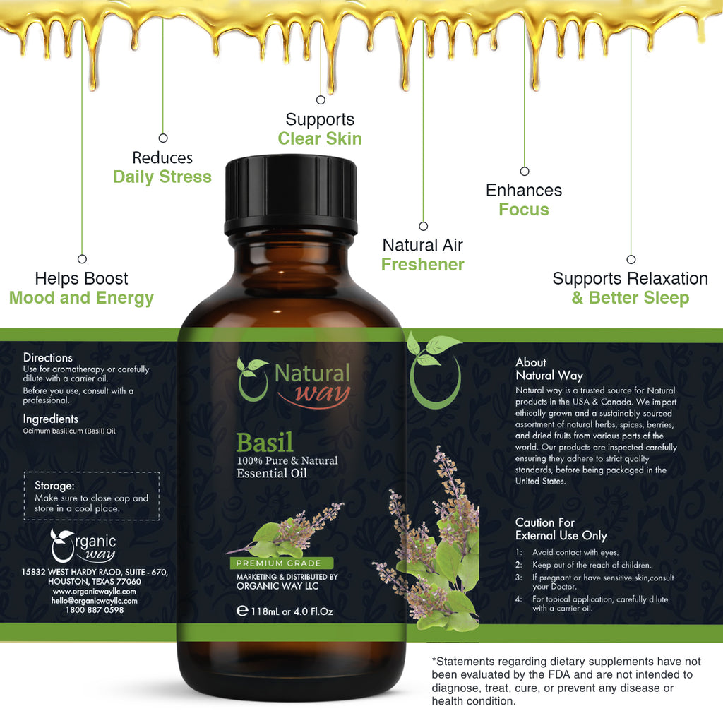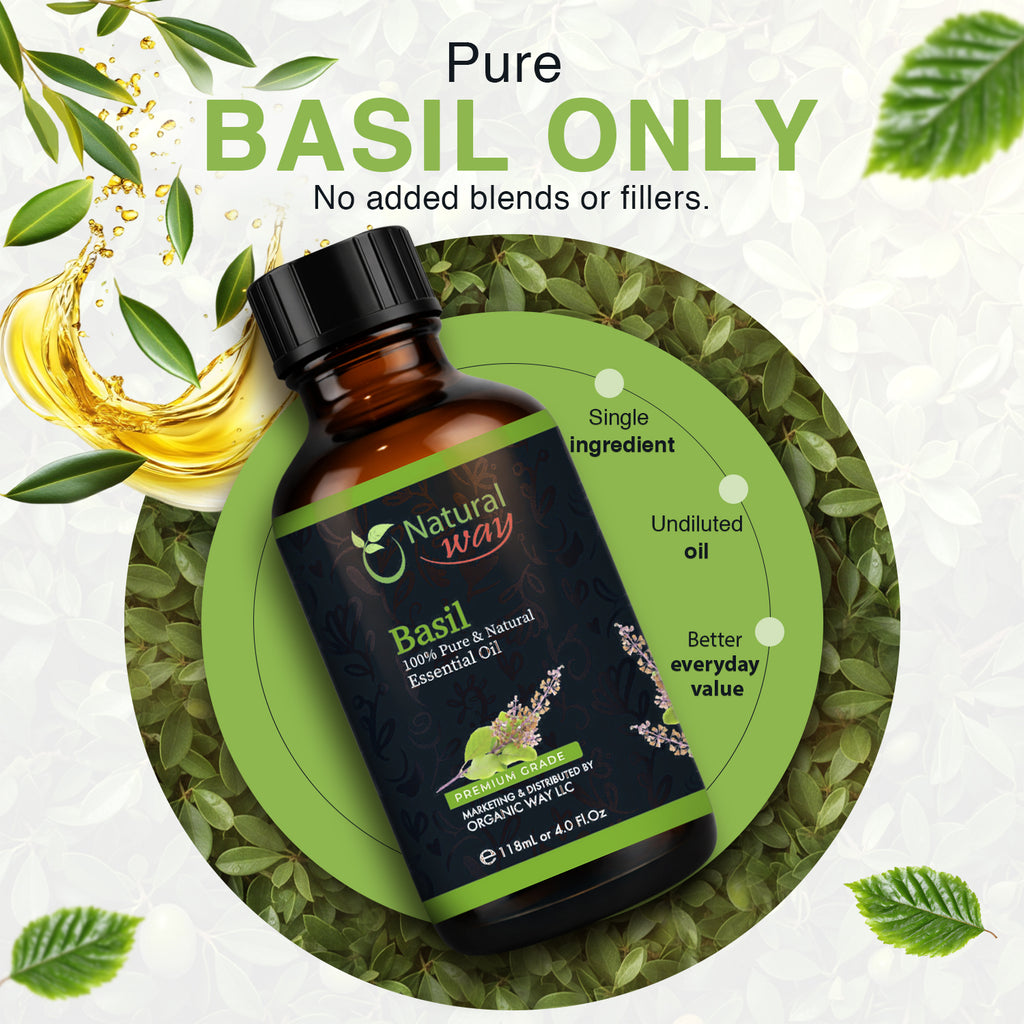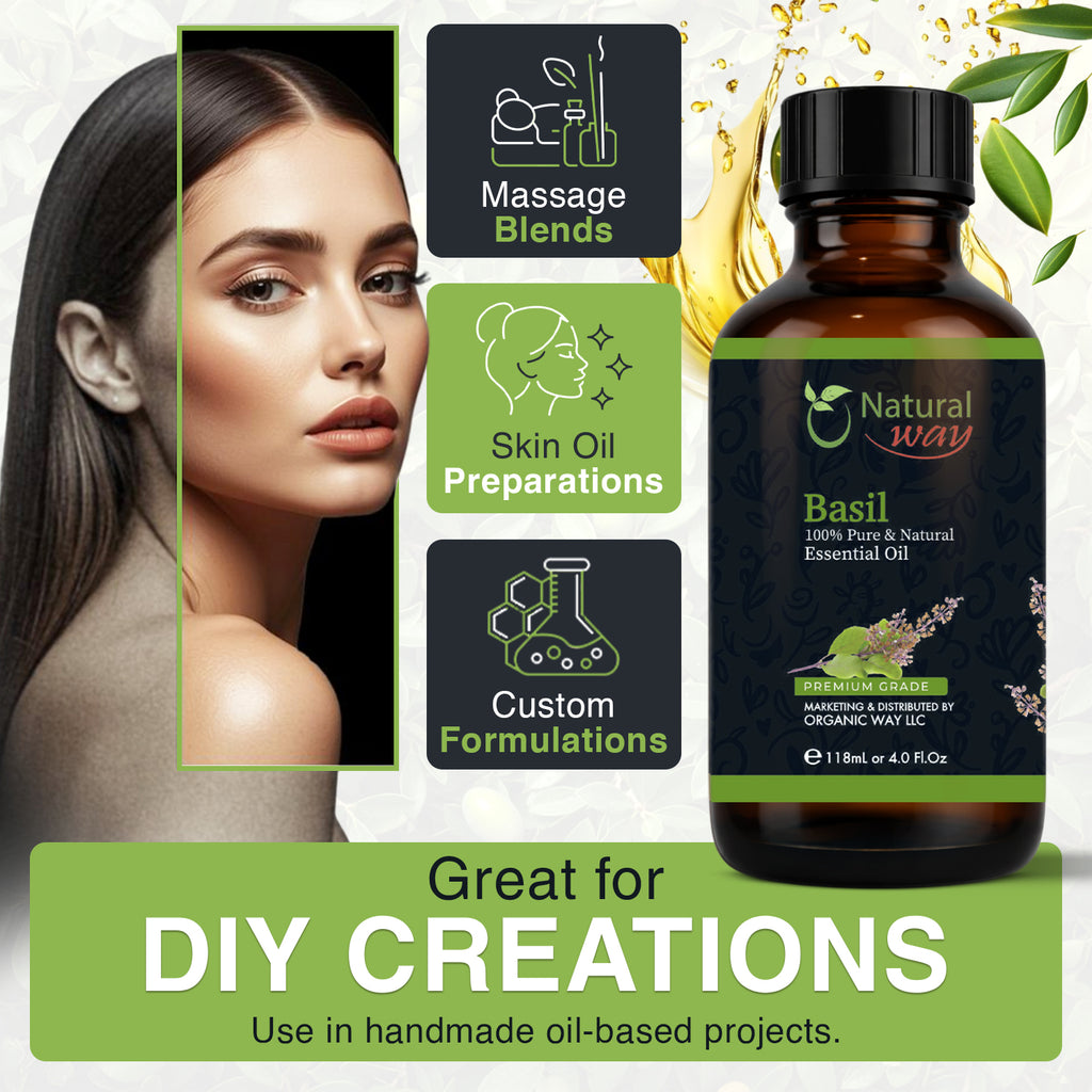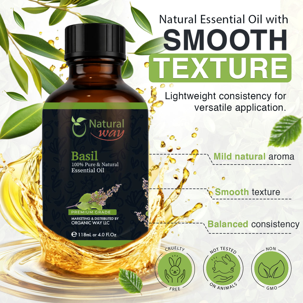 Basil Essential Oil for Diffusers | Natural Aroma Oil for Home Fragrance, Humidifier & DIY Candle Making, Long Lasting Scent for Office, Bedroom & Soothing Scent 4 Fl Oz (120 mL)
