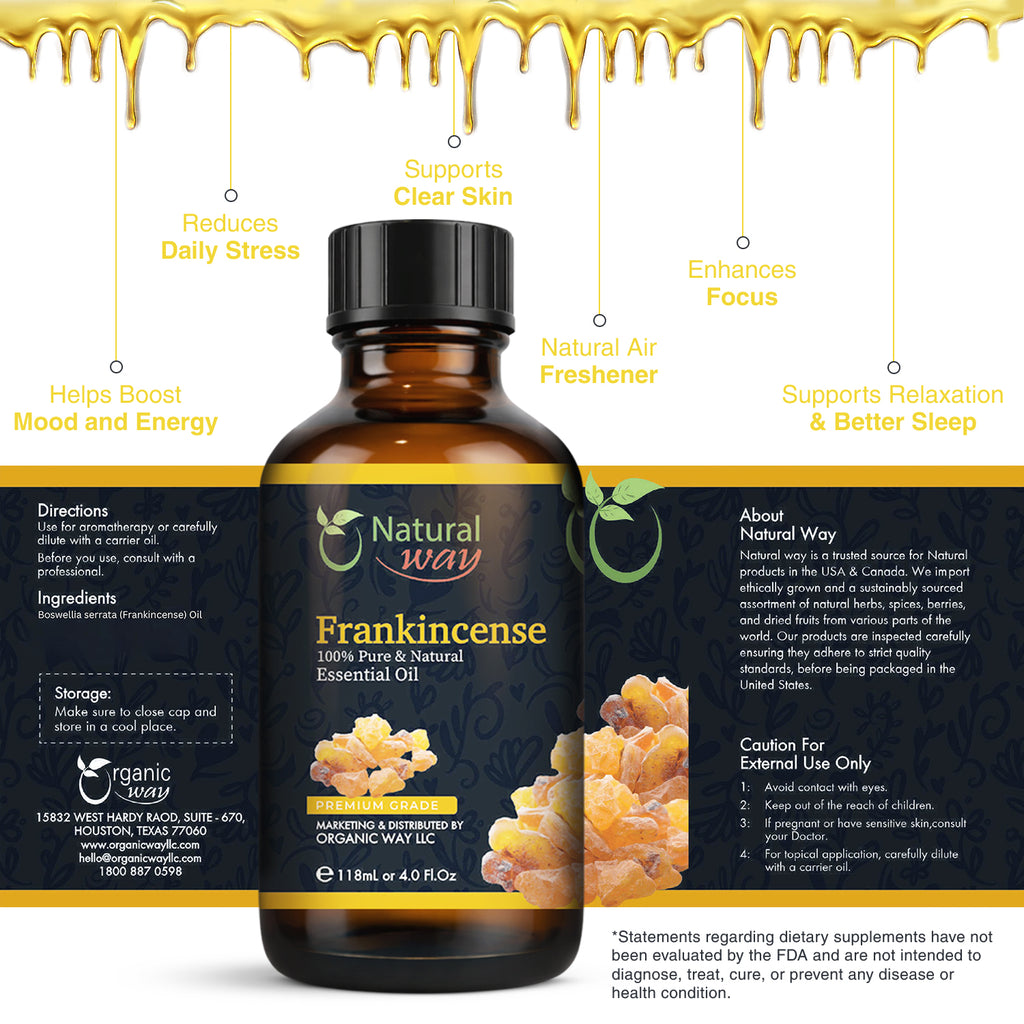 Natural Way Frankincense Essential Oil | Premium Grade Essential Oils for Hair Care, Oil for Skin, Aromatherapy, & Diffuser | Essential Oil for Hair, Massage Oil & Humidifier Use | 4 Fl Oz (120 mL)l)