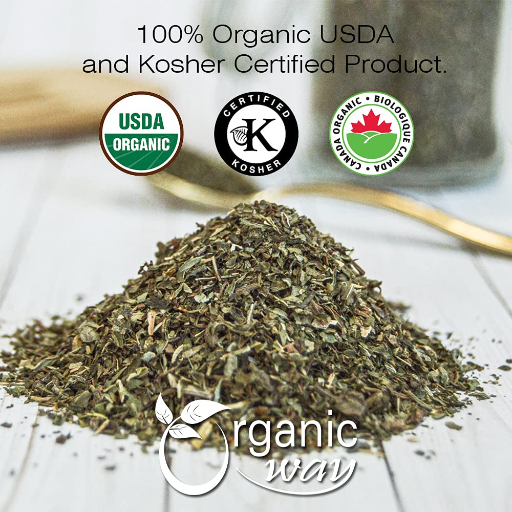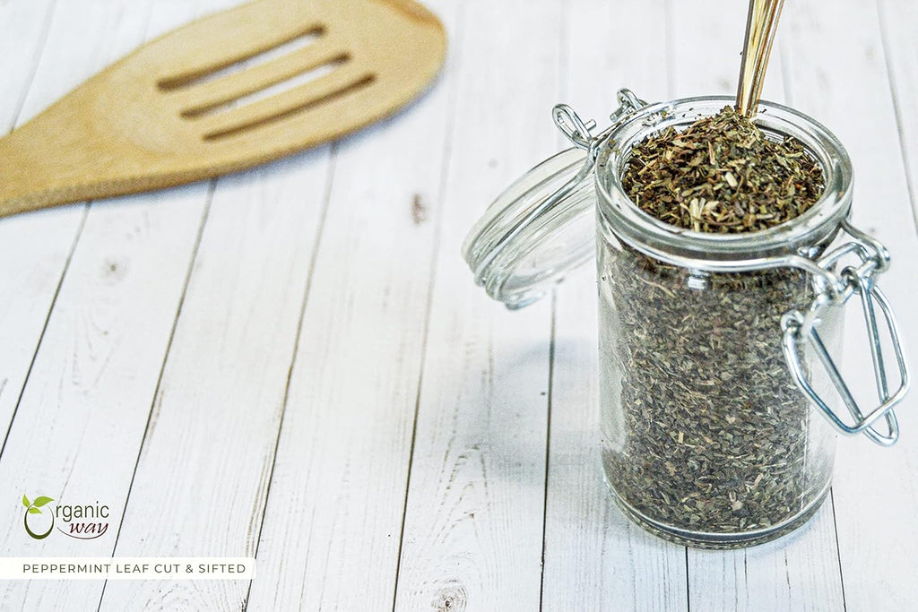Peppermint tea is the one of the few universally popular herbal beverages with refreshing and stress-relieving properties. The easy to prepare morning drink is made best with original naturally grown peppermint cut and sifted leaves. A cup of hot water and some tea leaves is all you need to start your day refreshed and energized.The herb has healing properties and fights bacterial infections while also improving sleep by treating clogged sinuses. Many people use it as a mouth freshener and stress-reliever. Organic Way's high quality peppermint leaf are cut and sifted and processed in a hygienic environment in accordance with the USDA and Kosher organic food program guidelines.