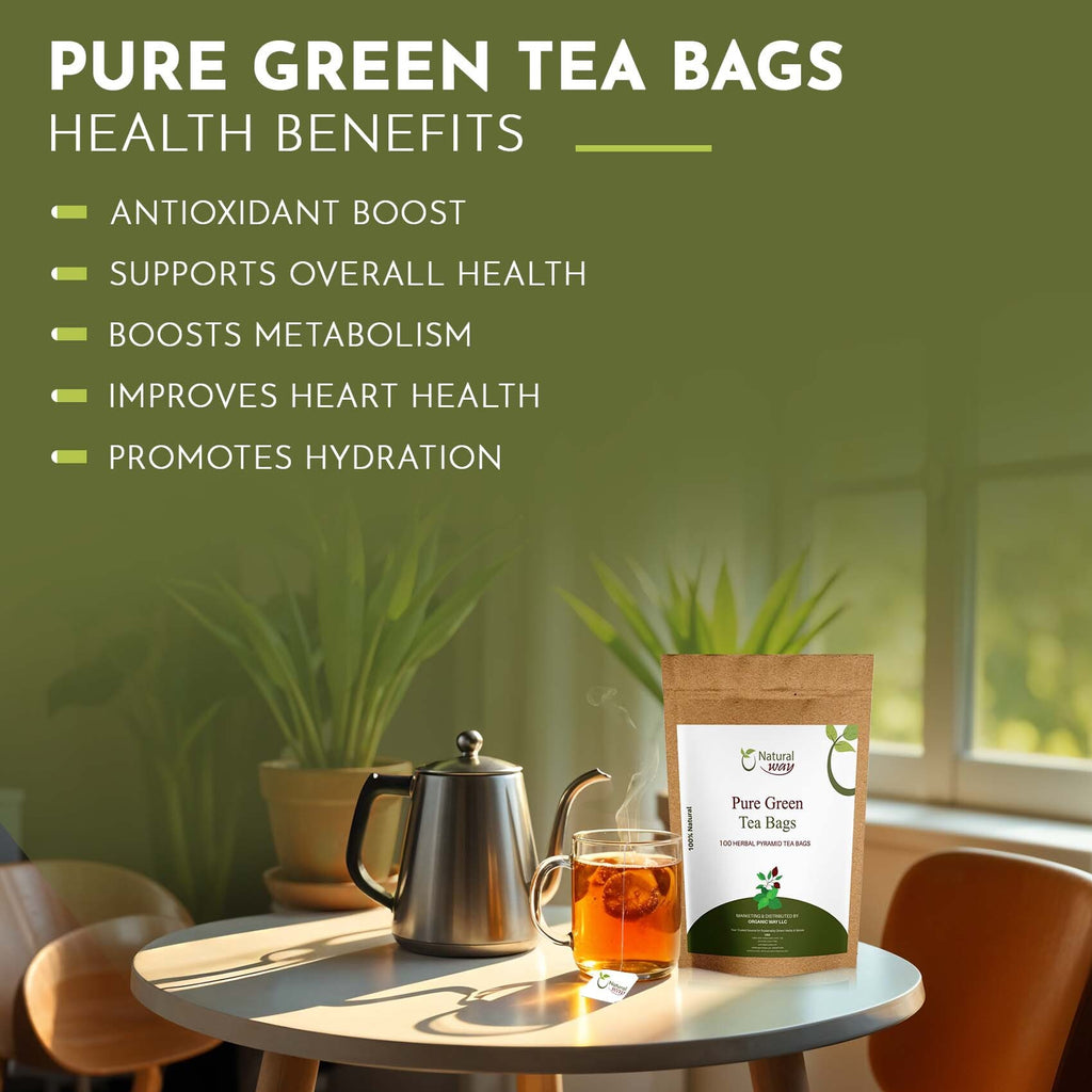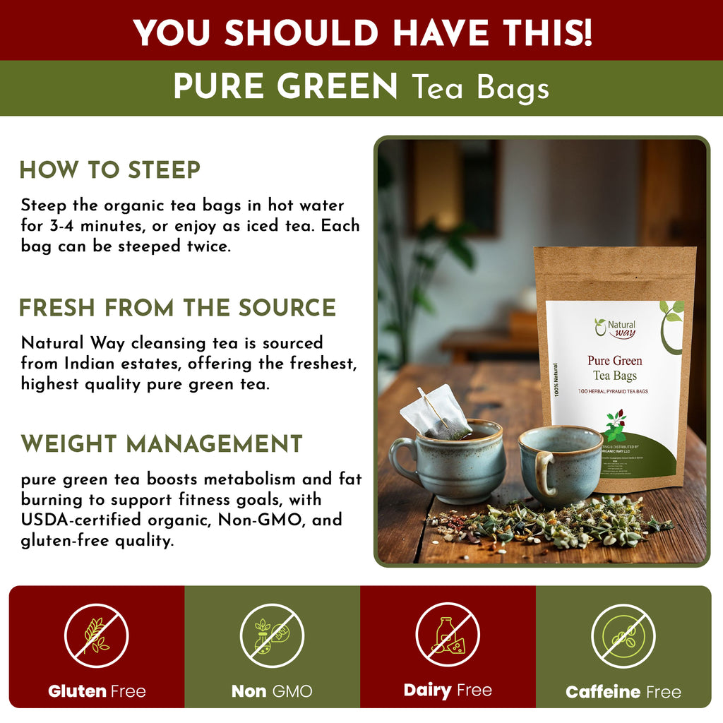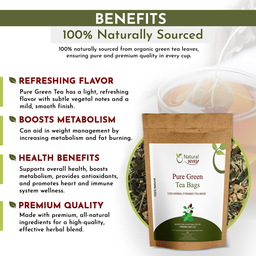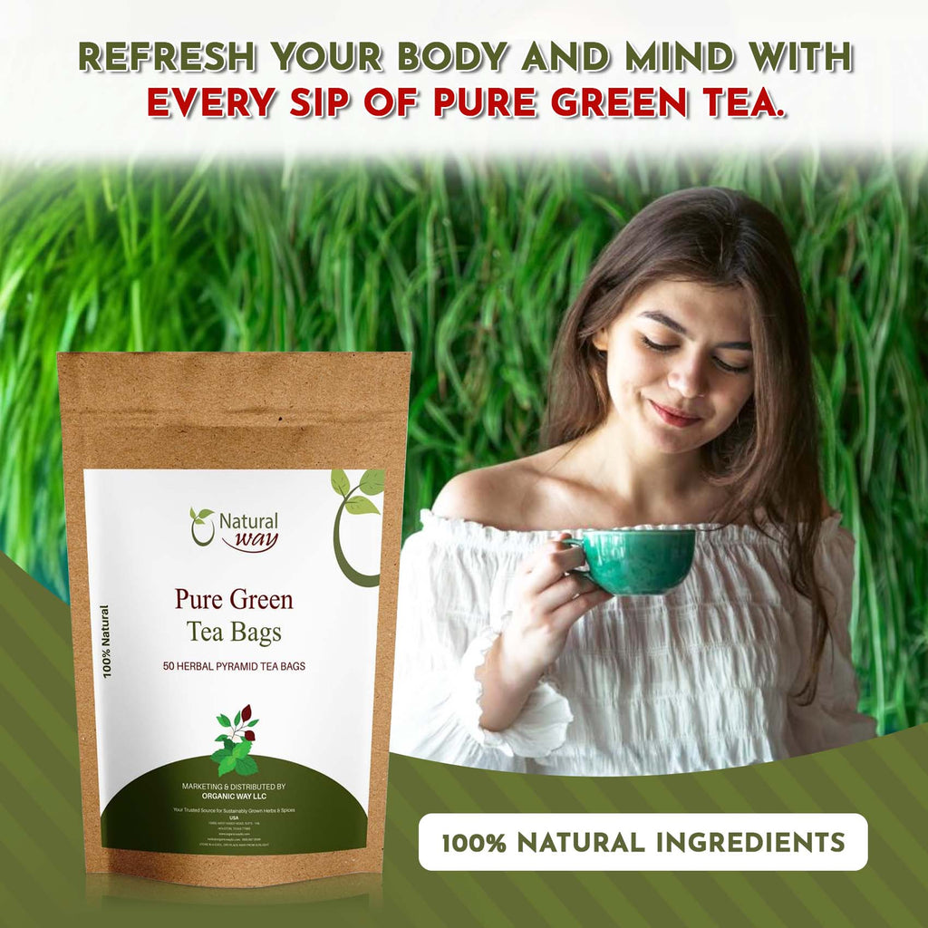 Pure Green Tea Bags | Caffeine-Free Pyramid Tea Bags,100% Natural Ingredients, ECO Conscious Packaging | Herbal Tea for Relaxation | Rich Flavor, and Sustainable Enjoyment