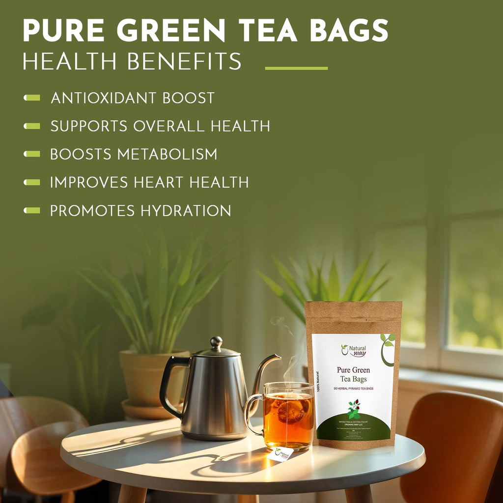 Elevate your daily routine with Natural Way Pure Green Tea Bags. Sourced from the finest tea gardens, our tea leaves are carefully selected to deliver a truly exceptional cup of green tea. Each sip offers a harmonious blend of delicate flavor and invigorating benefits. Experience the tranquility of a serene tea ceremony in the comfort of your own home. Our green tea is rich in antioxidants, promoting overall well-being and supporting a healthy lifestyle. It’s the perfect companion for a mindful moment, whether you prefer a hot cup or a refreshing iced tea. Indulge in pure simplicity. Our tea bags are free from artificial additives and preservatives, ensuring a natural and authentic taste. Discover the timeless elegance of green tea and make it a part of your daily ritual.
