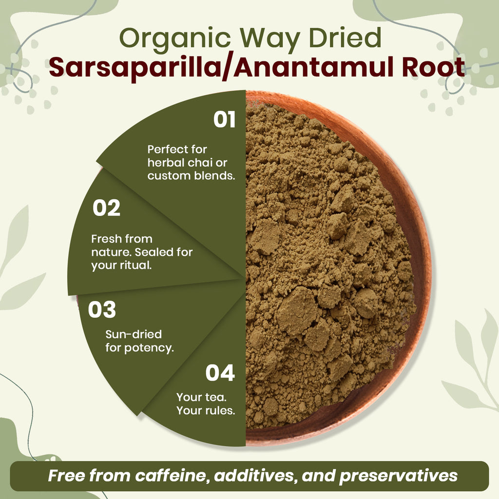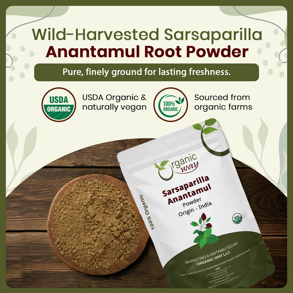 Sarsaparilla/Anantamul Root (Hemidesmus indicus) Powder - Herbal Tea | USDA & Kosher Certified | Vegan, Non GMO & Gluten Free | Resealable Bag | 100% Raw from India