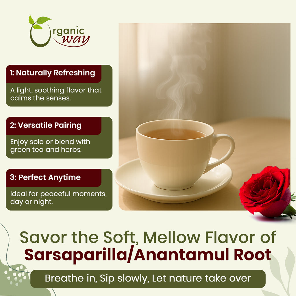 Sarsaparilla Tea boosts the body's ability to stay healthy. This smooth and sweet tasting tea is reminiscent of the soft drink, but without harmful additives. This beneficial herbal tea is delicious hot and cold, and can be enjoyed any time of day, all year round.