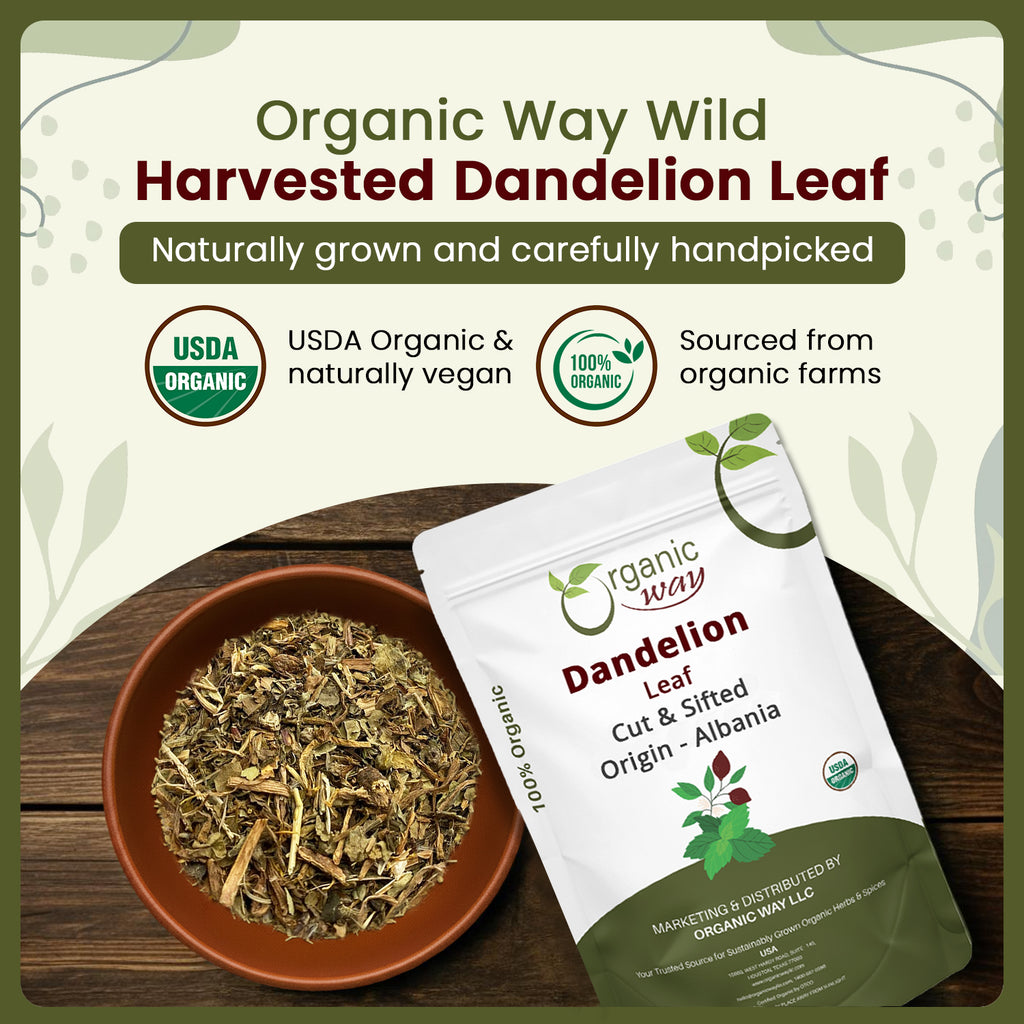 Dandelion Leaf (Taraxacum Officinale) Cut & Sifted - Herbal Tea | European Wild-Harvest | Kosher & USDA Certified | Vegan, Non-GMO & Gluten Free | 100% Raw from Albania
